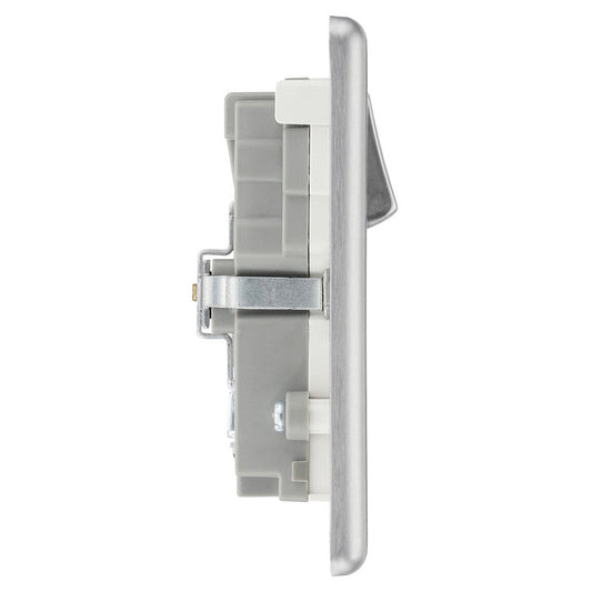 BG Brushed Steel USB 13A White Insert Switched Socket 2 Gang + 2 USB (3.1A) Upgrade your space with the BG Brushed Steel 2 Gang Switched Socket with USB charging. Featuring a modern brushed steel finish and white insert switches, this unit combines style and practicality. With two 13A switched...