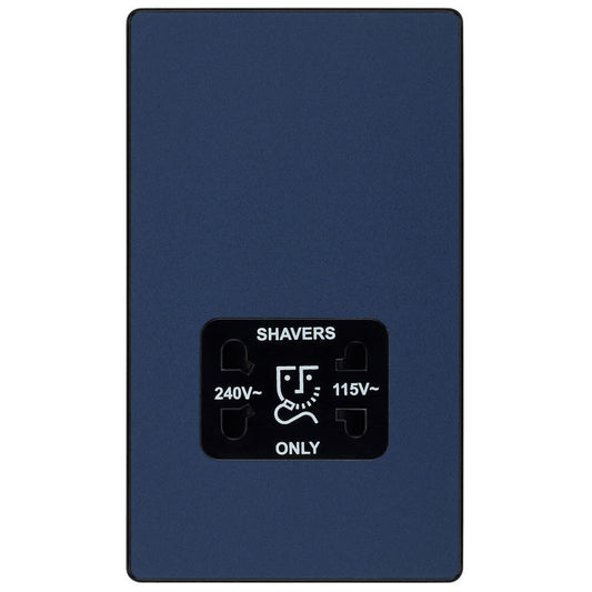 BG Evolve Matt Blue (Black Ins) Dual Voltage Shaver Socket 115/240V Bring style and practicality to your bathroom with the BG Evolve Matt Blue Dual Voltage Shaver Socket. With a premium matt blue finish and black insert, this unit delivers both 115V and 240V outputs, making it ideal for powering...