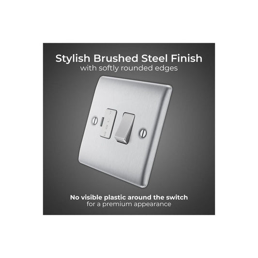 BG Nexus Metal Brushed Steel 13A Switched Fused Connection Unit 1 Gang Ensure safe and reliable appliance control with the BG Nexus Metal Brushed Steel 13A Switched Fused Connection Unit. Featuring a premium brushed steel metal finish, this 1 gang unit combines contemporary style with dependable performance. Designed for secure...