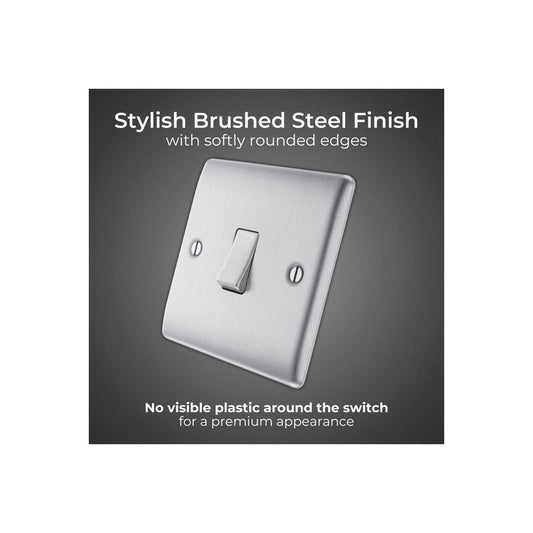 BG Nexus Metal Brushed Steel Switch 20A 16AX 2 Way Upgrade your lighting control with the BG Nexus Metal Brushed Steel Switch 20A 16AX 2 Way. Featuring a premium brushed steel metal finish, this 2-way switch combines contemporary style with reliable performance. Its durable metal construction ensures smooth, long-lasting operation,...