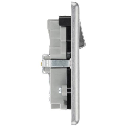BG Brushed Steel 13A DP Black Insert Switched Socket Upgrade your home or workspace with the BG Brushed Steel 13A DP Black Insert Switched Socket — a stylish, durable, and dependable power solution. Designed with a modern brushed steel finish and a sleek black insert, it delivers a premium look...