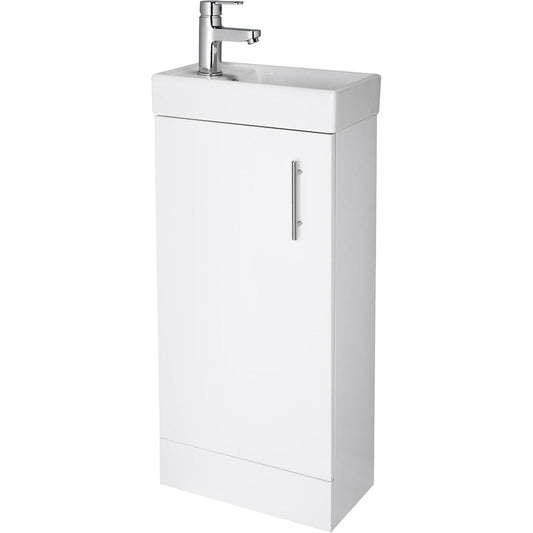 Compact Elegance with Nuie Vault Single Door Floor Standing Vanity Unit with Ceramic Basin 400mm Maximise your bathroom space with the Nuie Vault Single Door Compact Floor Standing Vanity Unit with Ceramic Basin 400mm. Designed for smaller bathrooms, en-suites, or cloakrooms, this unit offers practical storage without compromising on style...