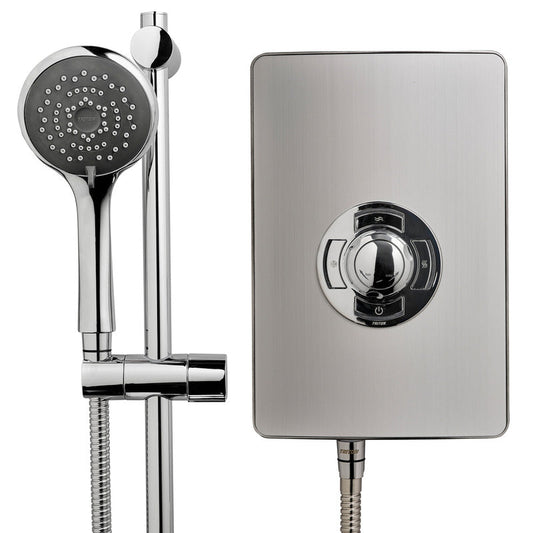 Modern, Durable Showers for Everyday Comfort The Triton Collection Electric Shower in brushed steel combines sleek contemporary style with reliable performance. Its durable finish complements modern bathrooms while delivering consistent water flow and temperature for a comfortable showering experience. Perfect for homes, flats, or en-suites, this shower offers easy-to-use controls...