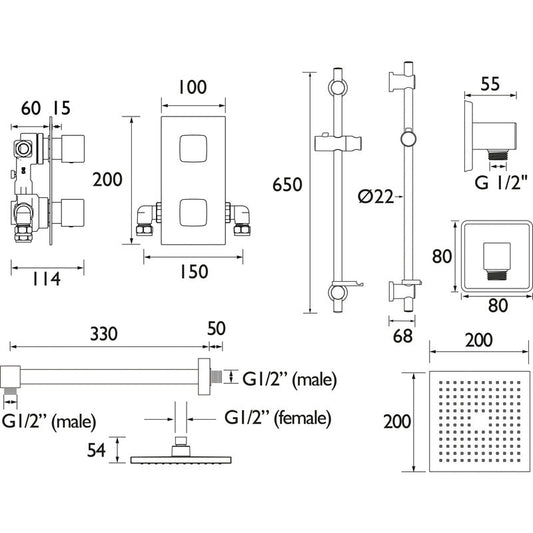 Bristan Cobalt Thermostatic Concealed Diverter Mixer Shower Black – Bold Design, Precision Control Enhance your bathroom with the Bristan Cobalt Thermostatic Concealed Diverter Mixer Shower in Black, a perfect blend of modern elegance and precise performance. With its striking matt black finish and minimalist concealed design, this shower creates a...