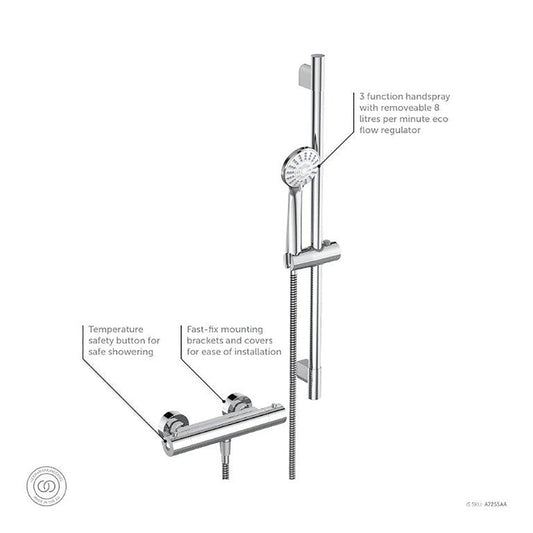 Efficient and Safe Ideal Standard Ecotherm Thermostatic Bar Mixer Shower The Ideal Standard Ecotherm Thermostatic Bar Mixer Shower delivers precise temperature control, modern styling, and energy-efficient performance. Designed with thermostatic technology, it maintains a consistent water temperature, protecting you from sudden changes and ensuring a safe, comfortable shower every time....
