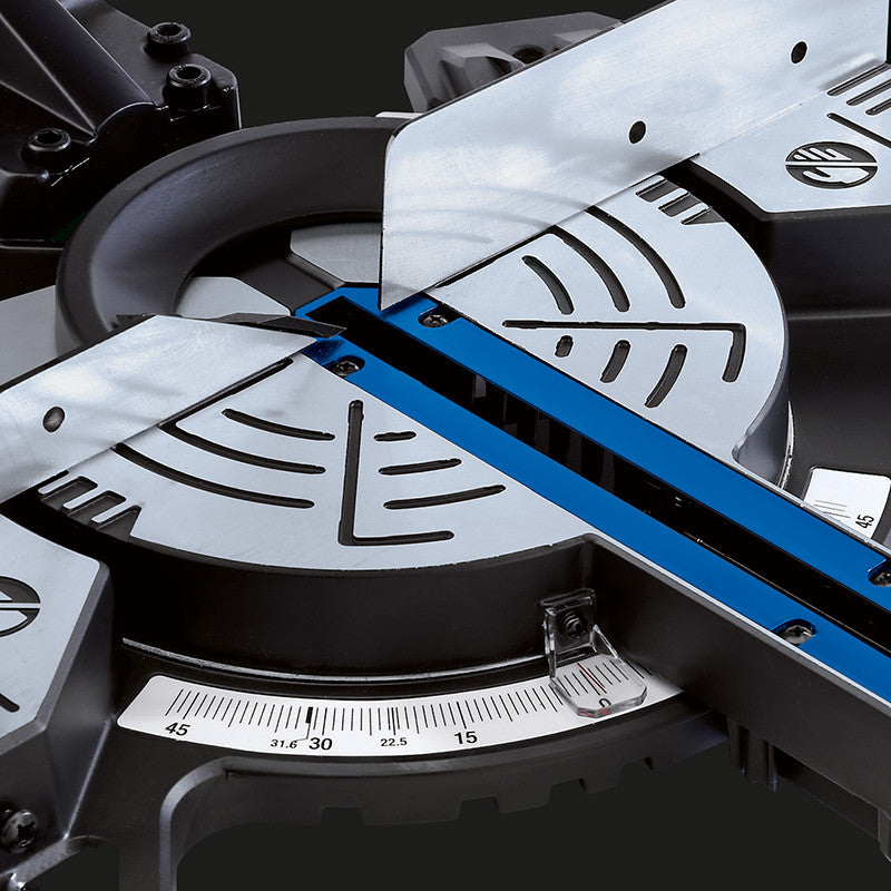 Fitted with a 255mm blade, the saw provides excellent cutting depth and width, making it ideal for cutting timber, boards, skirting, architrave, and larger profiles. The sliding mechanism increases cutting capacity compared to fixed mitre saws, allowing you to handle wider workpieces with ease while maintaining precise control throughout the cut.