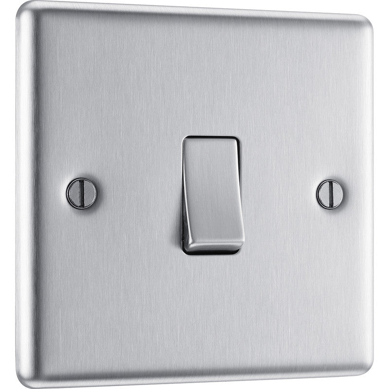 The BG Brushed Steel Switch 1 Gang Intermediate 10A is designed for flexible lighting control in combination with 2-way switches. Its intermediate functionality allows you to control a single light from three or more locations, making it perfect for large rooms, hallways, or staircases. The brushed steel finish provides a modern and elegant touch that suits any interior décor.