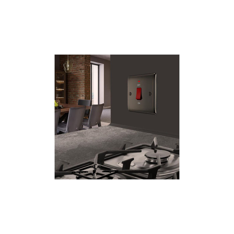 Ensure safe and reliable high-current control with the BG Nexus Metal Black Nickel 45A Square Double Pole (DP) Switch. Featuring a sleek black nickel metal finish, this 1 gang DP switch is designed for isolating high-power appliances such as cookers or boilers. The built-in neon indicator provides clear on/off status, combining safety, style, and convenience in one premium unit.