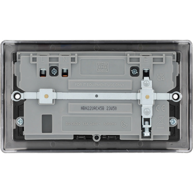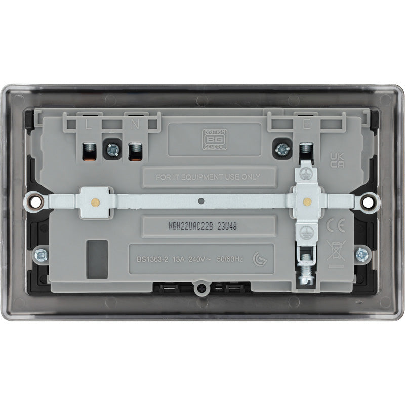 Upgrade your space with the BG Nexus Metal Black Nickel Power Socket With USB A+C 2 Gang. This modern, high-performance socket combines two standard 13A outlets with fast-charging USB-A and USB-C ports, giving you efficient power options for today’s devices.