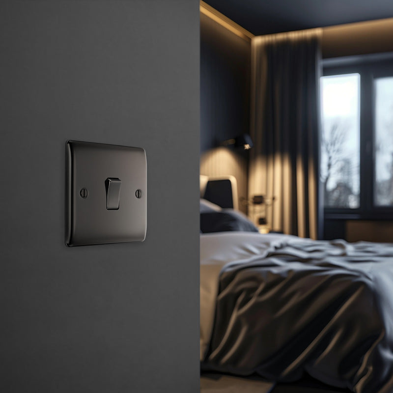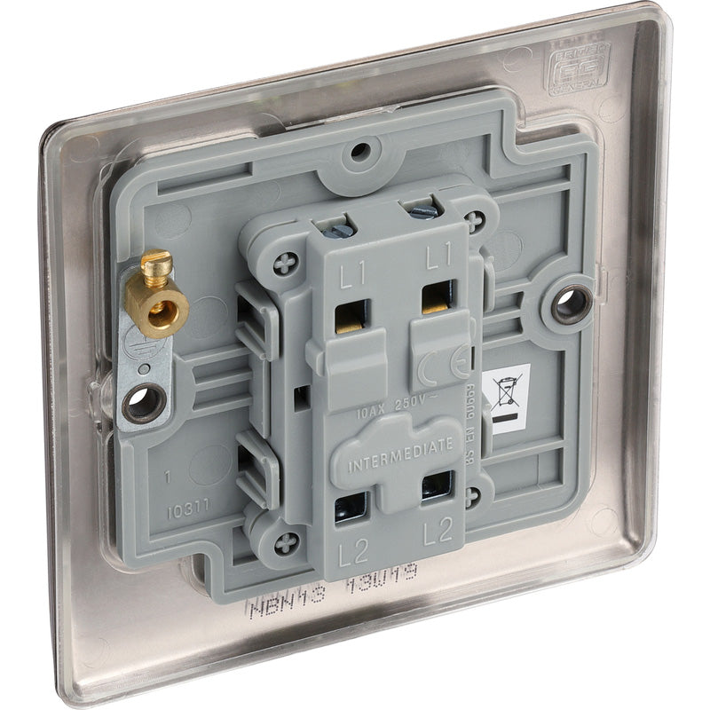 Take full control of your lighting with the BG Nexus Metal Black Nickel Switch Intermediate 1 Gang. Designed with a sleek black nickel finish, this intermediate switch allows lights to be controlled from three or more locations, making it ideal for hallways, staircases, and large rooms. Its premium metal construction ensures durability and long-lasting performance.