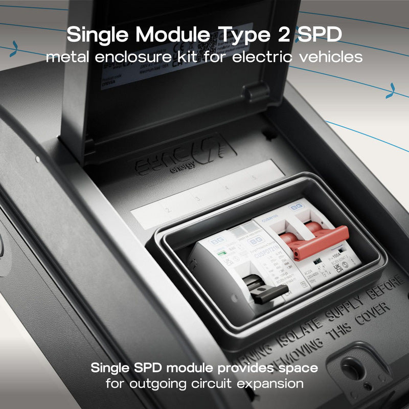 The BG Sync Energy EV Charger Populated Consumer Unit is a fully equipped, high-quality solution for electric vehicle charging installations. Featuring a 5-way IP65 rated enclosure, 100A main switch, 40A MCB, Type 2 SPD, and surge protection, it provides safety, reliability, and compliance for domestic or commercial EV charging setups.