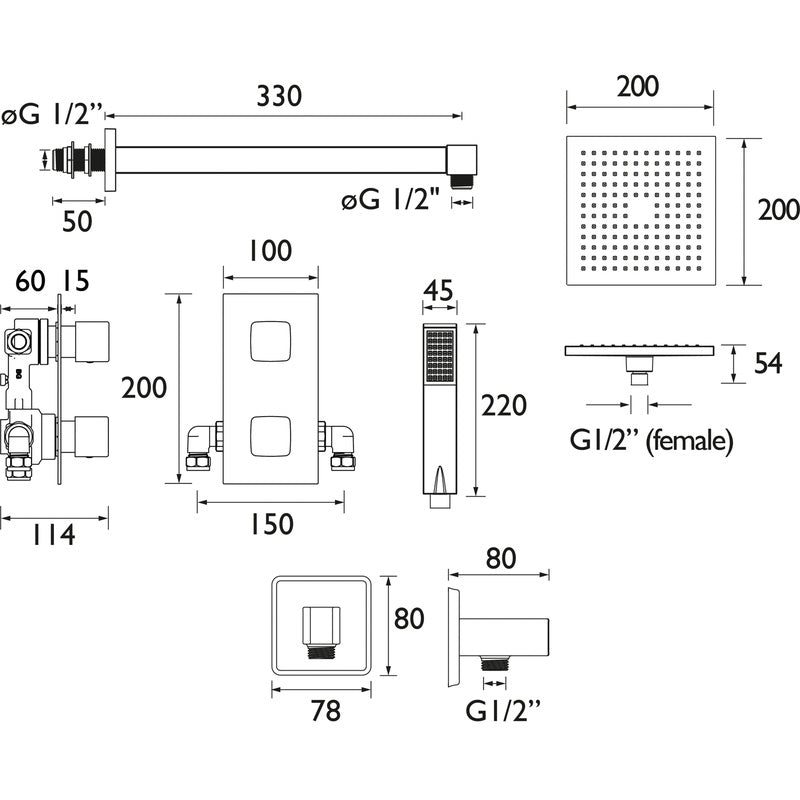 Equipped with a thermostatic cartridge, it ensures consistent water temperature and protection against scalding, even when water pressure fluctuates. The diverter control allows you to effortlessly switch between the fixed overhead shower and handheld shower, offering a comfortable and flexible showering experience.
