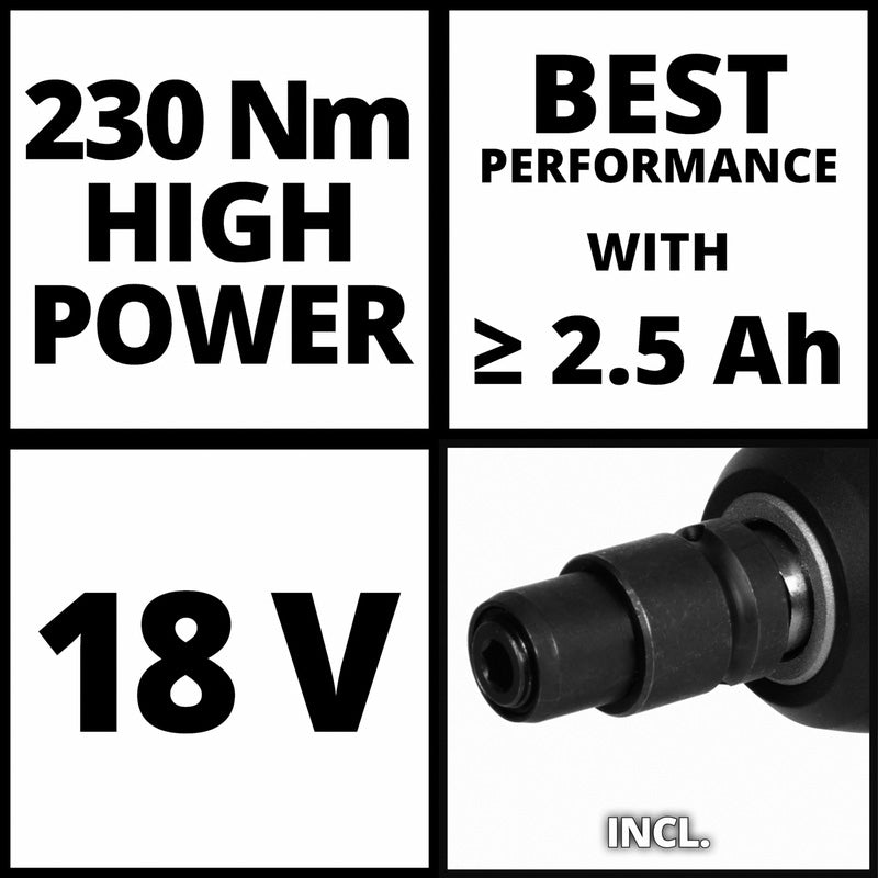 Supplied body only with a bit adapter, this cordless impact wrench is compatible with Einhell 18V PXC lithium ion batteries (not included), giving you flexibility and cordless convenience. Its lightweight 1.17 kg design and ergonomic handling make it ideal for extended use.