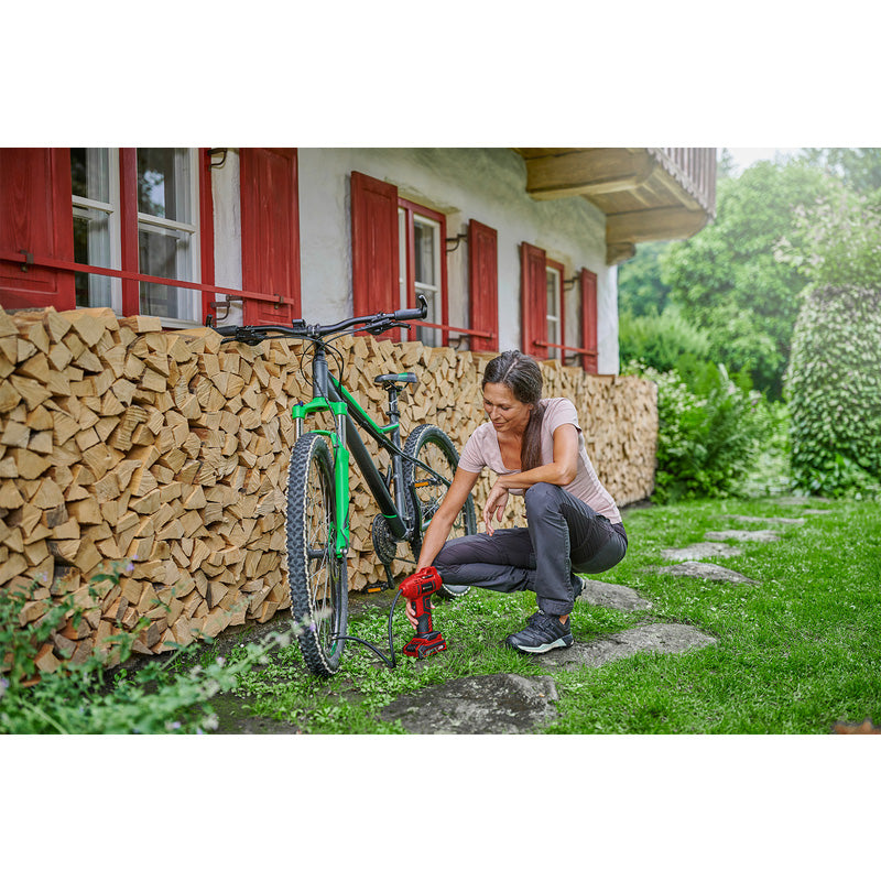 The Einhell PXC 18V Cordless Car Air Compressor is a compact, portable, and battery-powered solution for quick tyre inflation and other small pneumatic tasks. Designed for cordless convenience, it is ideal for home, garage, and roadside use.