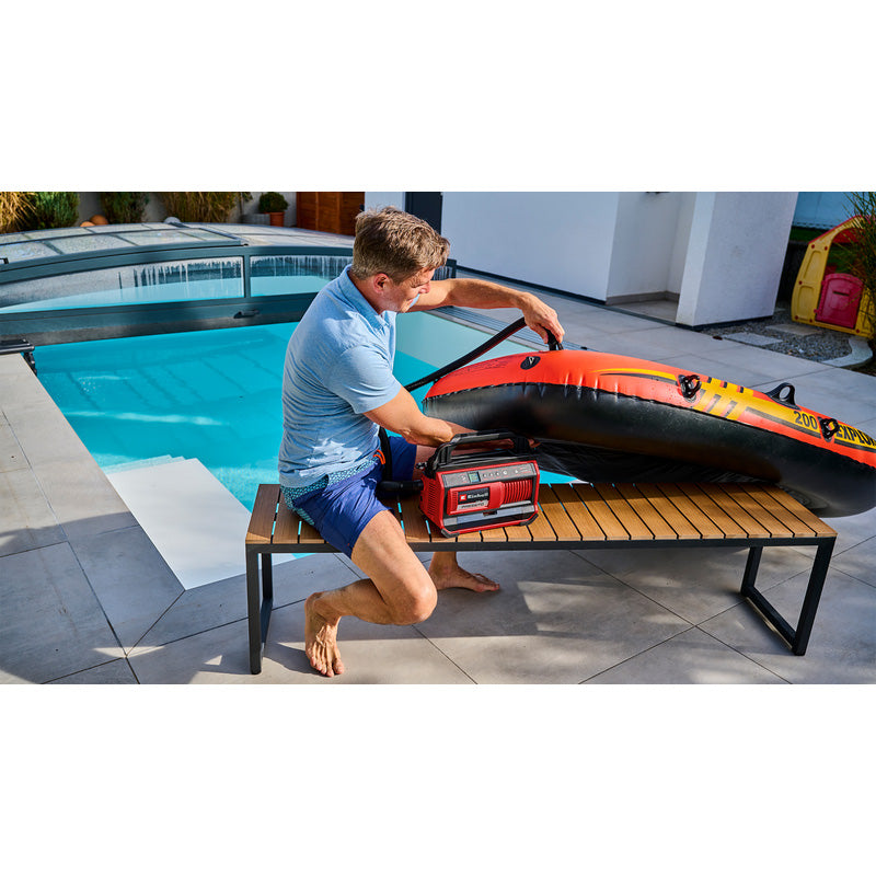 The Einhell PXC 18V PRESSITO 18/25 Cordless Air Compressor is a compact, lightweight, and portable solution for quick tyre inflation and small pneumatic tasks. Its oil-free pump ensures maintenance-free operation, while the cordless 18V lithium-ion compatibility provides ultimate mobility.