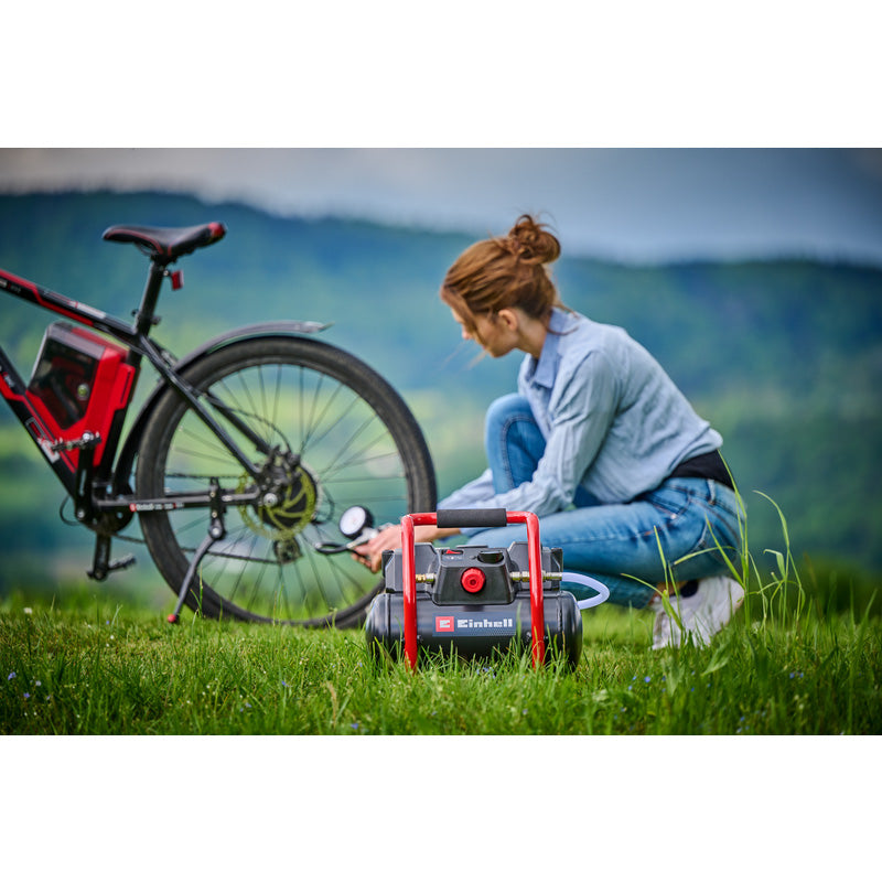The Einhell PXC 36V Cordless Air Compressor 6L is a portable, battery-powered compressor designed for professional and DIY use where mobility and convenience are essential. Its oil-free pump ensures maintenance-free operation, while the 36V lithium-ion battery compatibility provides cordless freedom.