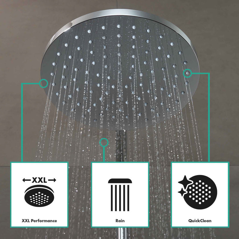 The Hansgrohe Vernis Blend Thermostatic Bath Bar Diverter Mixer Chrome combines contemporary style, precise thermostatic control, and versatile bath functionality. Its thermostatic bar mixer maintains a consistent water temperature, protecting against sudden fluctuations for a safe and comfortable bath every time.