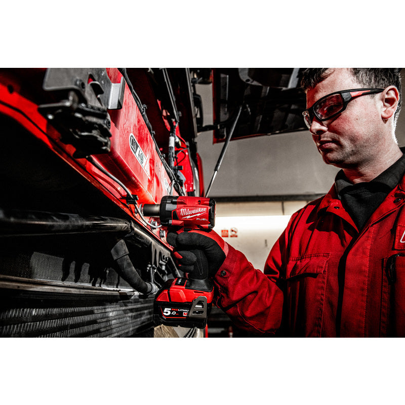 Supplied with 2 x 5.0 Ah M18 lithium ion batteries, a fast M12–M18 charger, and an HD storage box, it ensures extended runtime and uninterrupted work. Its compact 124 mm length and 1.8 kg weight make it ideal for tight spaces and easy handling, while the 1/2 inch friction ring anvil allows for quick, secure socket changes.