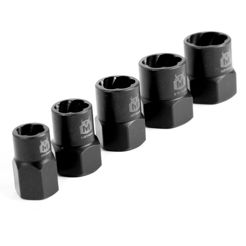 The Minotaur Bolt Grip Nut Remover Set (5 Piece) is a must-have tool for mechanics and DIY enthusiasts, designed to remove rounded, damaged, or rusted nuts and bolts quickly and efficiently. Made from durable hardened steel, these removers provide maximum grip and long-lasting performance in tough conditions.