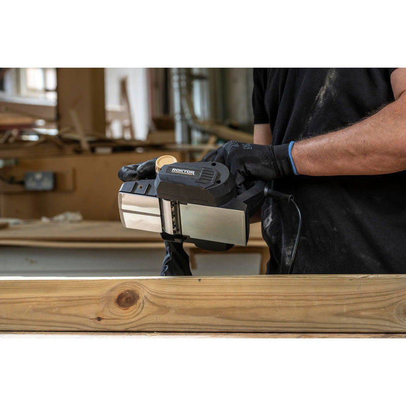 The ROKTOR 650W Electric Planer delivers precision, power, and ease of use for DIY enthusiasts and professional woodworkers. With a 650W motor, 230V corded operation, and up to 16,000 RPM, this planer efficiently smooths and shapes timber while providing consistent, clean results. Its compact design, combined with included guides and accessories, ensures accurate planing and rebating on a variety of woodworking projects.
