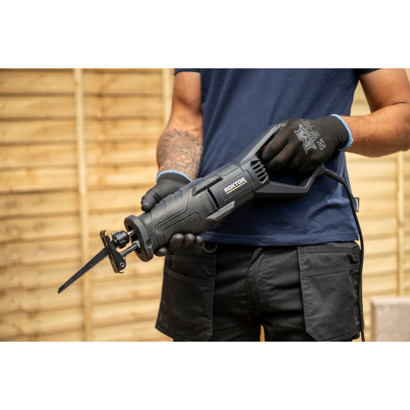 The ROKTOR 850W Reciprocating Saw is a heavy-duty corded cutting tool built for fast, aggressive performance on wood, metal, and demolition materials. With a strong 850W motor and a 230V mains supply, it delivers consistent cutting power for both home DIY projects and demanding trade applications.