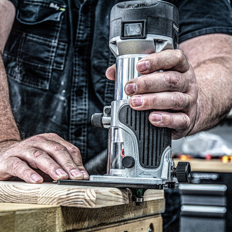 The Trend T1 1/4" 710W Trimmer with Trim Base is a compact, powerful, and highly accurate tool designed for clean trimming, shaping, and detailed woodworking. Powered by a reliable 710W mains motor, it delivers smooth performance for professionals and DIY users who need precision on every pass. Its trim base makes it ideal for edge work, laminate trimming, and fine finishing tasks.