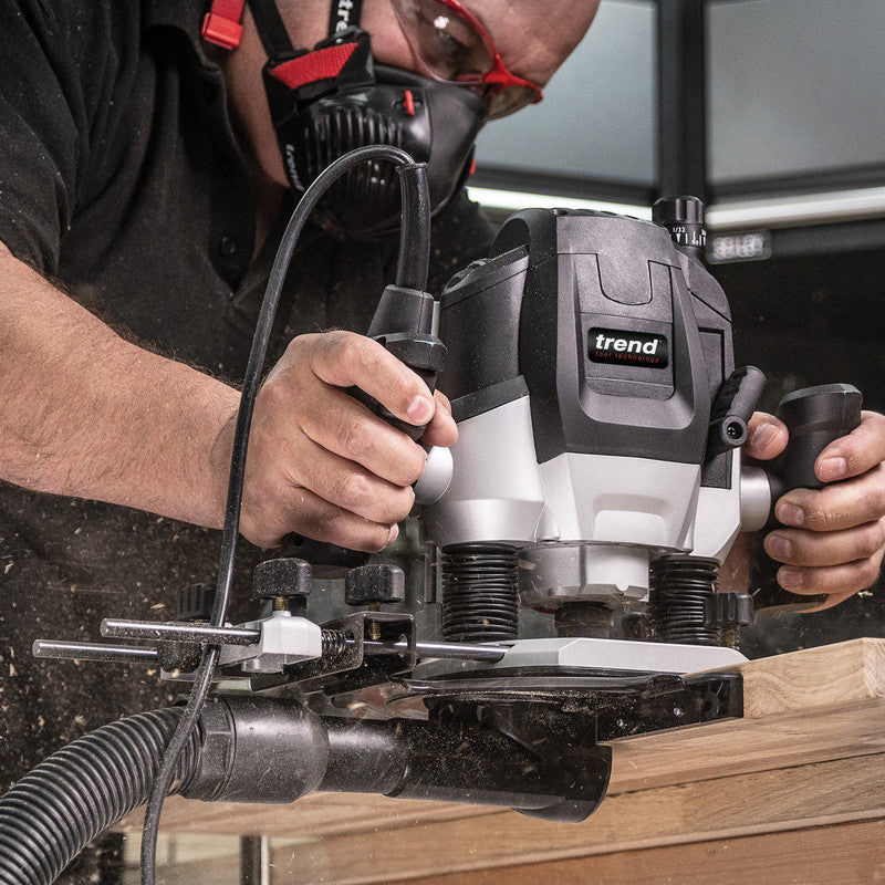 The Trend T7 1/2" Variable Speed Router is a powerful, professional grade tool designed for precision routing, trimming, shaping and cutting across a wide range of woodworking applications. With an impressive 2100W motor and 240V mains power, it delivers exceptional performance for heavy duty tasks in the workshop or on site.